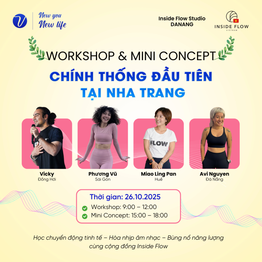 Lần đầu tiên, Inside Flow Vietnam kết hợp cùng Trung tâm Venus Yoga & Fitness – điểm đến của những người yêu chuyển động và đam mê trải nghiệm – mang không khí Workshop & Mini Concept chính thống đến thành phố biển Nha Trang.